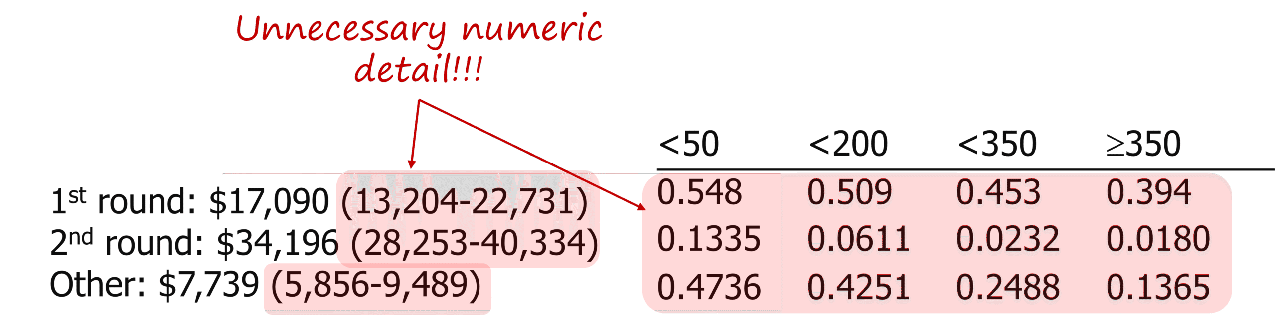 Were four decimal points necessary? Absolutely not. There is no reason anyone viewing a presentation on a screen needs that level of detail. I mistakenly thought what would be appropriate in a scientific manuscript would be appropriate for a scientific presentation. I was so wrong.